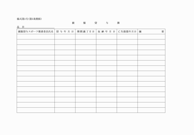 第5条 生涯学習課長は、被服貸与簿(様式第1号)を備え常に貸与状況を明らかにしておかなければならない。